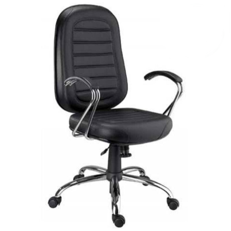 Cadeira Presidente BAIXA Base e Braços Cromados (Torcido) – COR PRETA – Pollo Móveis – 30104