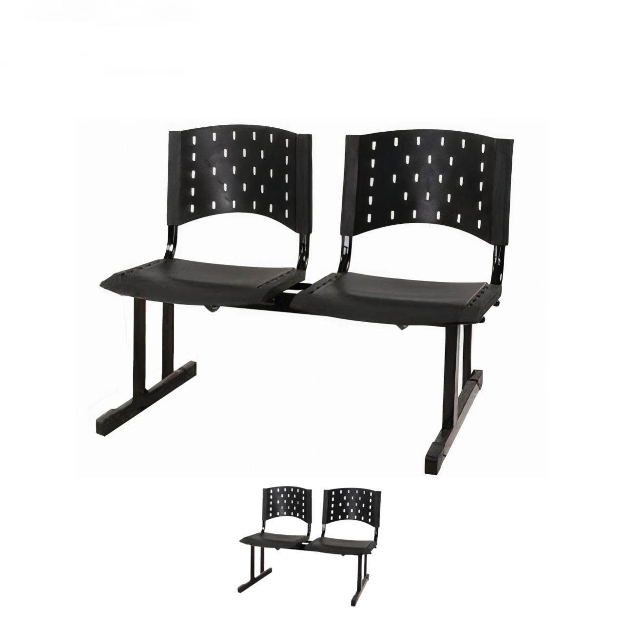 Kit 02 Cadeiras Longarinas PLÁSTICAS 02 Lugares – Cor PRETA – REALPLAST – 23018