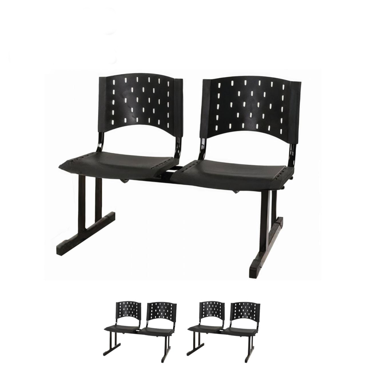 Kit 03 Cadeiras Longarinas PLÁSTICAS 02 Lugares – Cor PRETA – REALPLAST – 23019