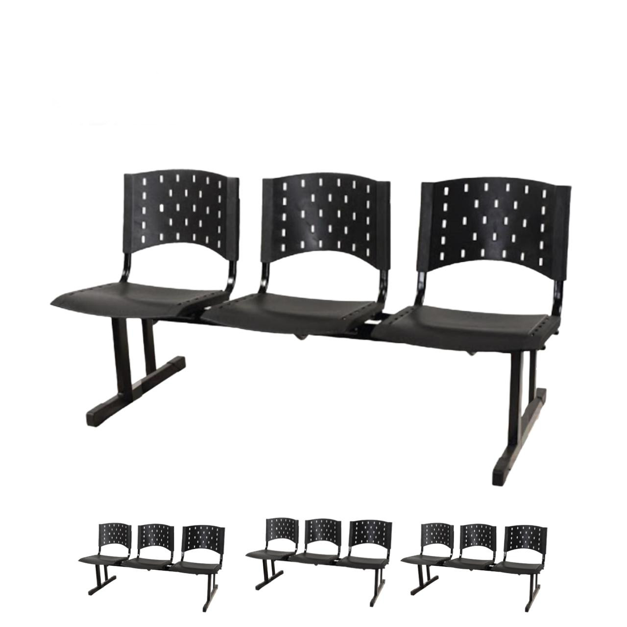 Produto: Kit 04 longarinas PLÁSTICAS 03 Lugares – Cor PRETO  – REALPLAST – 23002