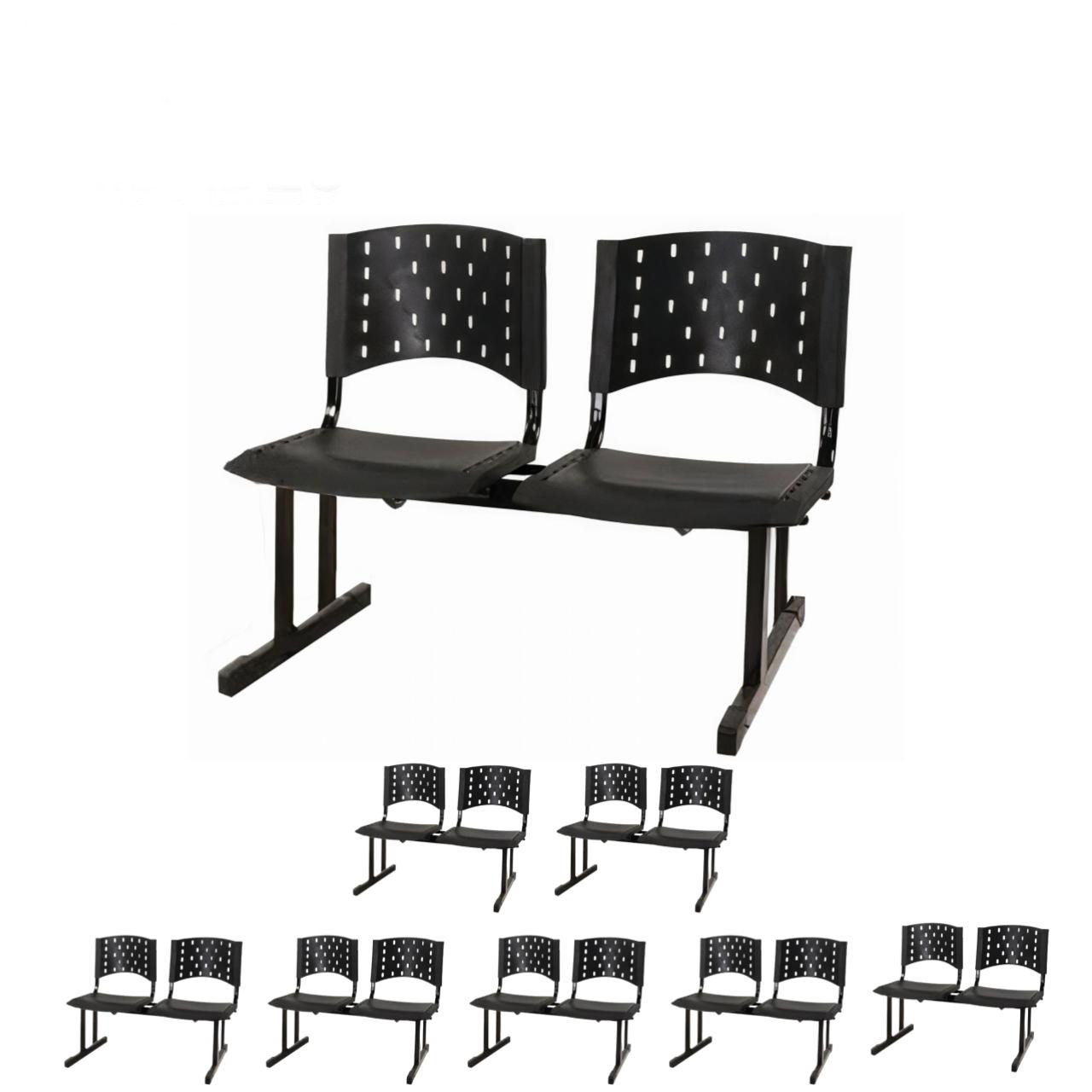 Kit 08 Cadeiras Longarinas PLÁSTICAS 02 Lugares – Cor PRETA – REALPLAST – 23024