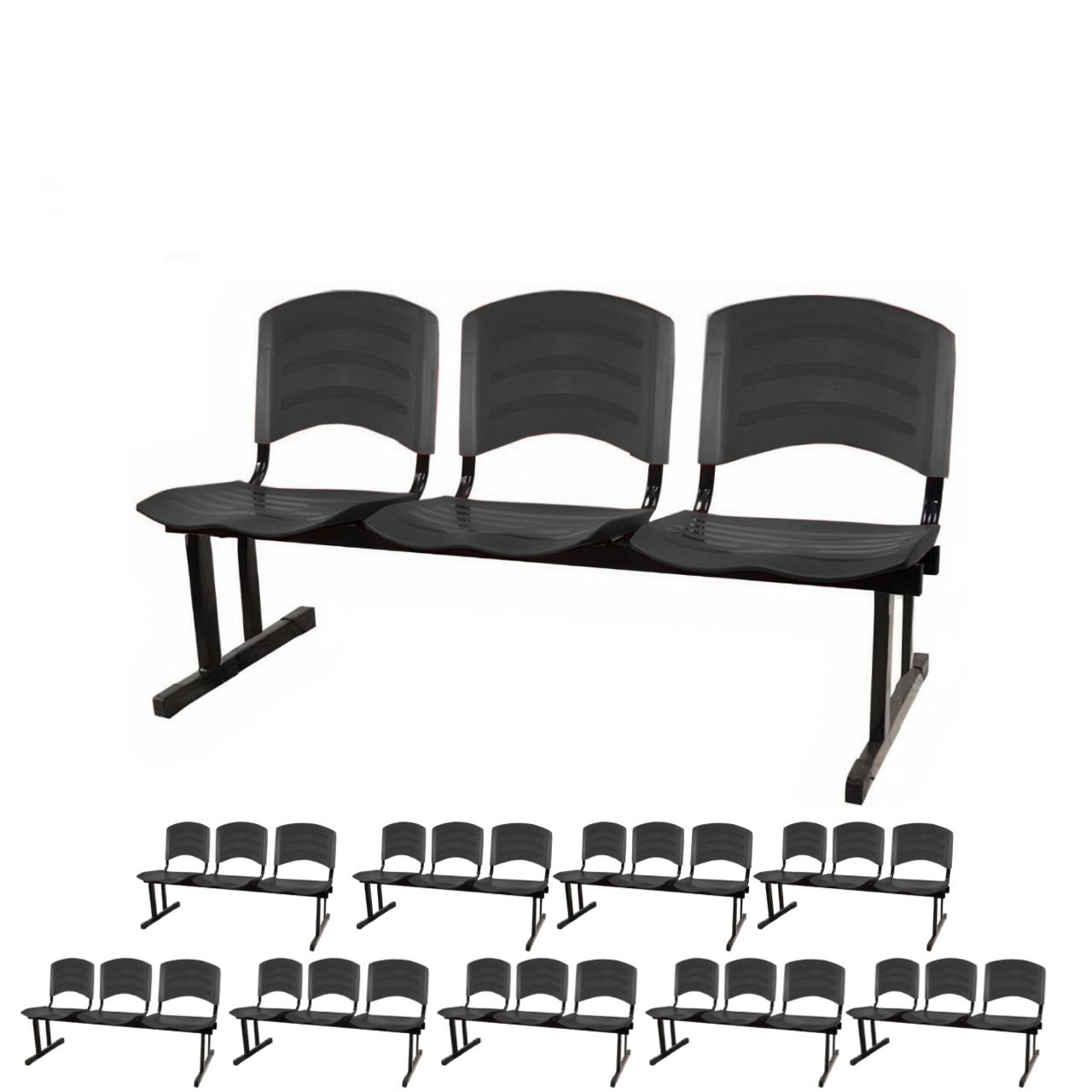 Produto: Kit 10 Cadeiras Longarinas PLÁSTICA 03 Lugares – Cor PRETO – REALPLAST – 33039