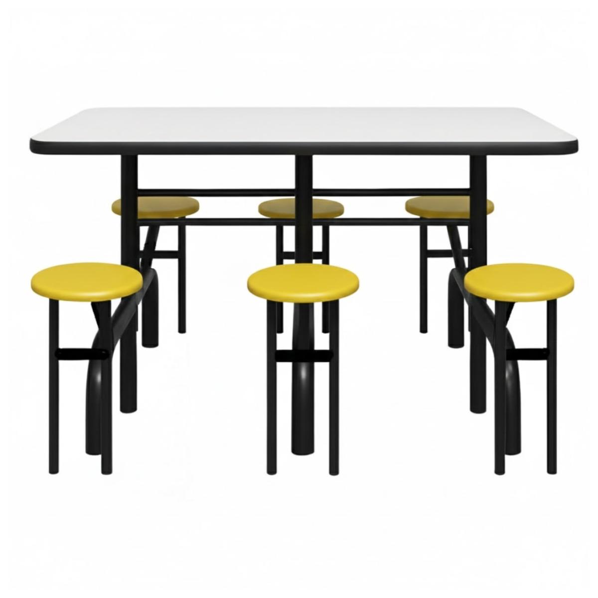 Mesa de Refeitório Coletiva Escamoteável com 6 Lugares Assento Amarelo