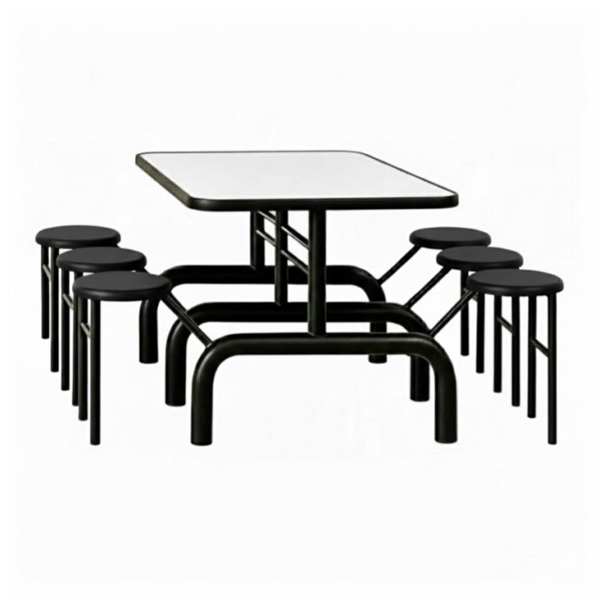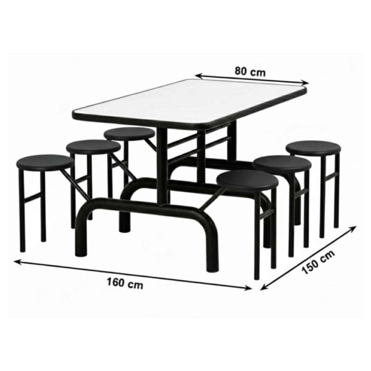 Mesa para Refeitório ESCAMOTEÁVEL 06 Lugares MDP Branco de 25 mm – Assento PRETO – 50604