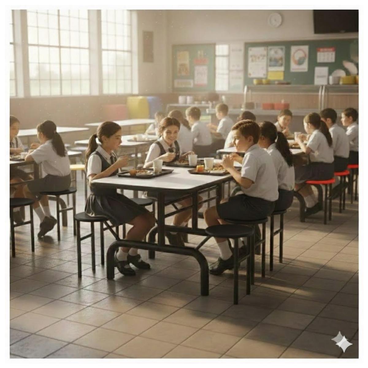 Mesa coletiva de refeitório com bancos Escamoteáveis integrados, ideal para uso em ambientes institucionais, industriais, escolares e corporativos. Estrutura metálica reforçada e assentos individuais acoplados garantem durabilidade, praticidade e organização do espaço.