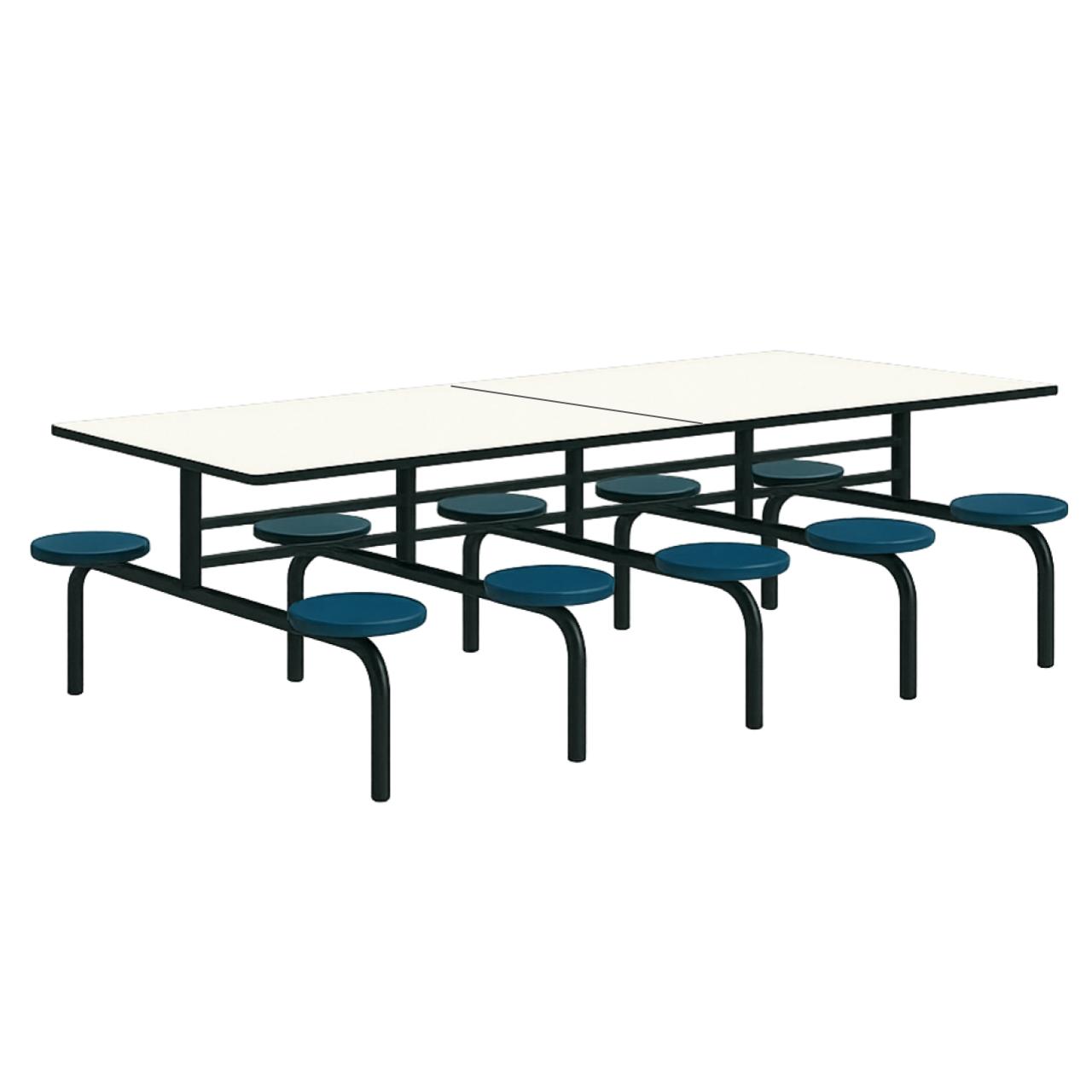 Mesa para Refeitório FIXA 10 Lugares MDP Branco de 25 mm – Assento AZUL – 50104