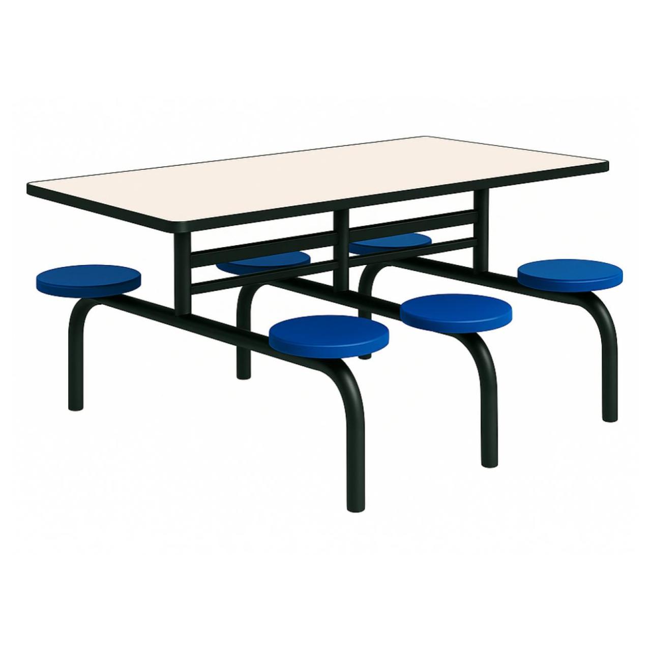 Mesa para Refeitório FIXA 6 Lugares MDP Branco de 25 mm – Assento AZUL – 50201