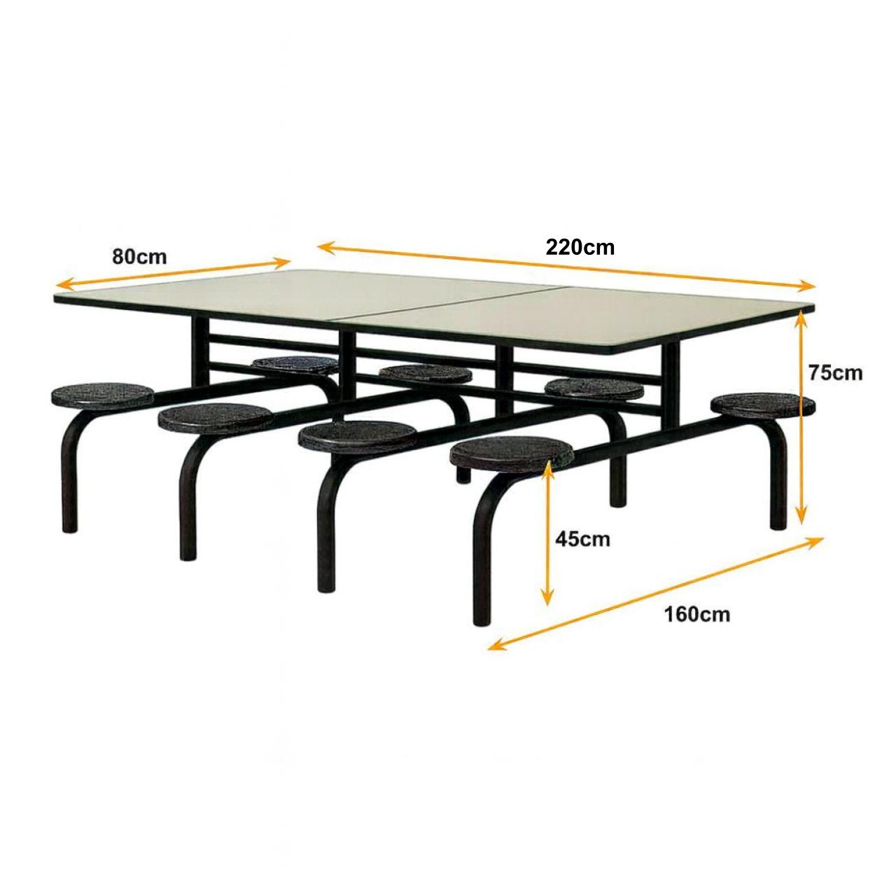 Mesa de Refeitório Coletiva com 8 Lugares Assento Preto