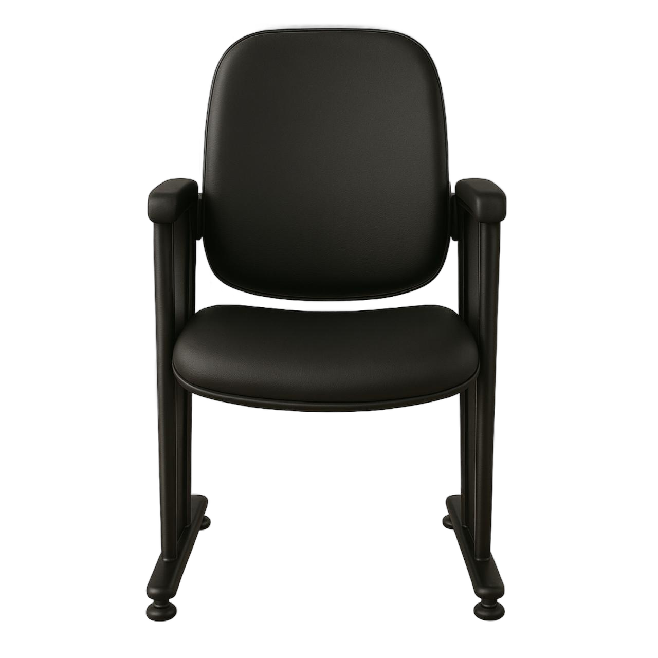 Base em tubo retangular com sapatas niveladoras em PVC rígido, que evitam contato direto com o piso e reduzem ruídos.