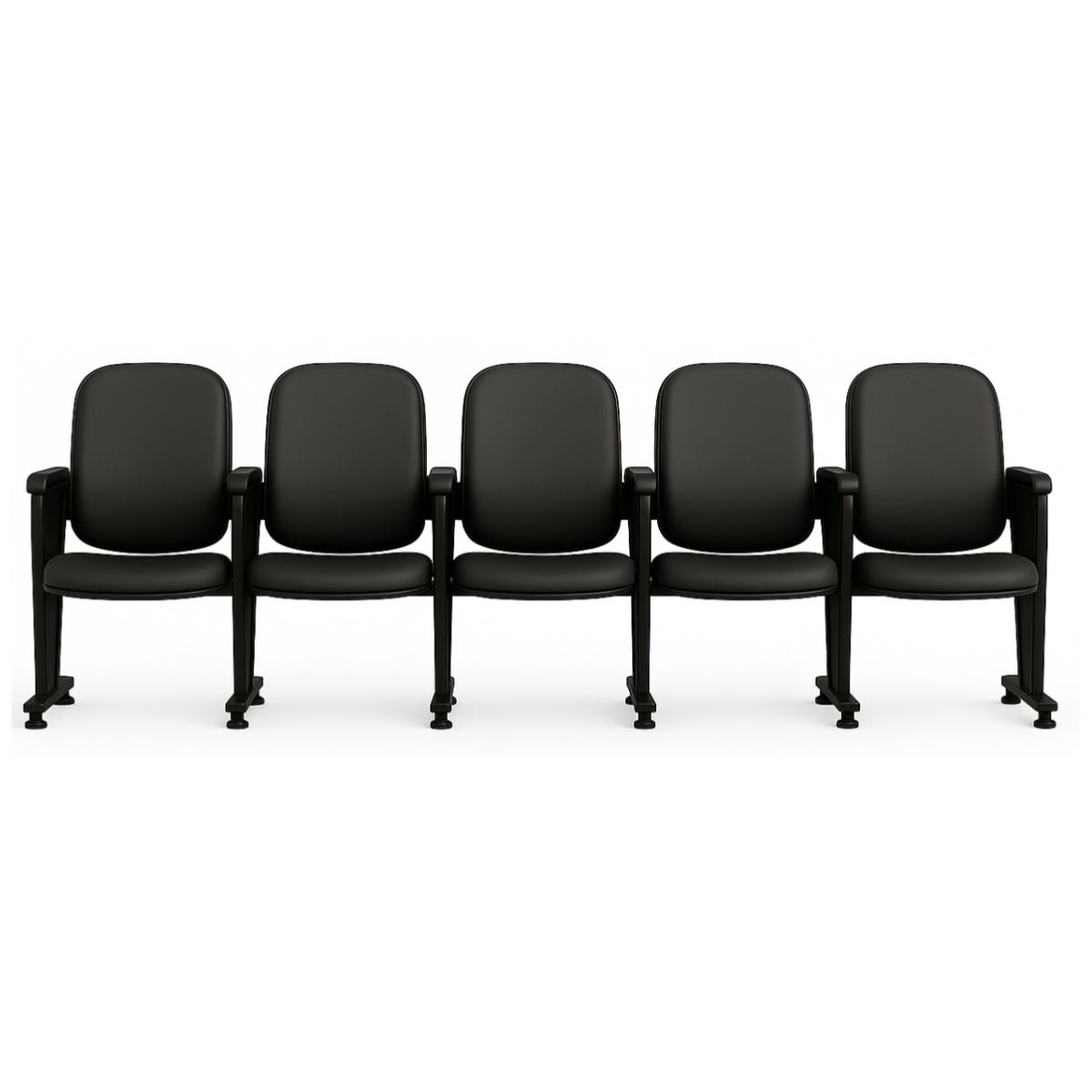 Poltrona Auditório Rebatível 05 Lugares – Linha Premium – Corino Preto – 38105