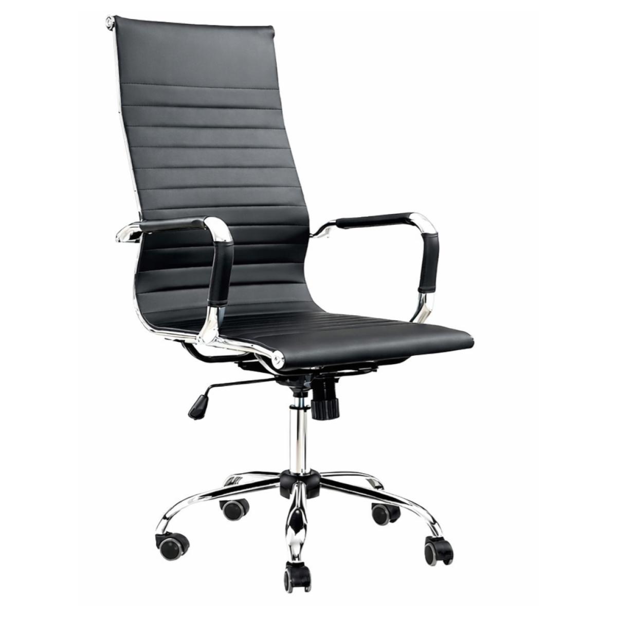 Cadeira Presidente Giratória em Courino Preto com Base Cromada | Escritório e Home Office